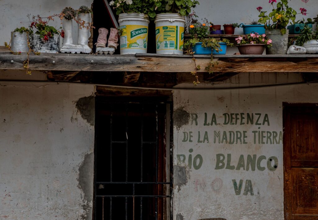 En la pared de una casa de quincha y barro alguien ha escrito en letras verdes una inscripción que reza: “Por la defensa de la madre tierra, Río Blanco no va”. Alguien también ha intentado borrar el “no”, pero el autor de la frase —quizá— ha vuelto y ha delineado el espacio en blanco con lapicero azul. Así es la persistencia de la lucha comunal en la sierra de Huancabamba contra el megaproyecto minero, de capitales chinos, Río Blanco.