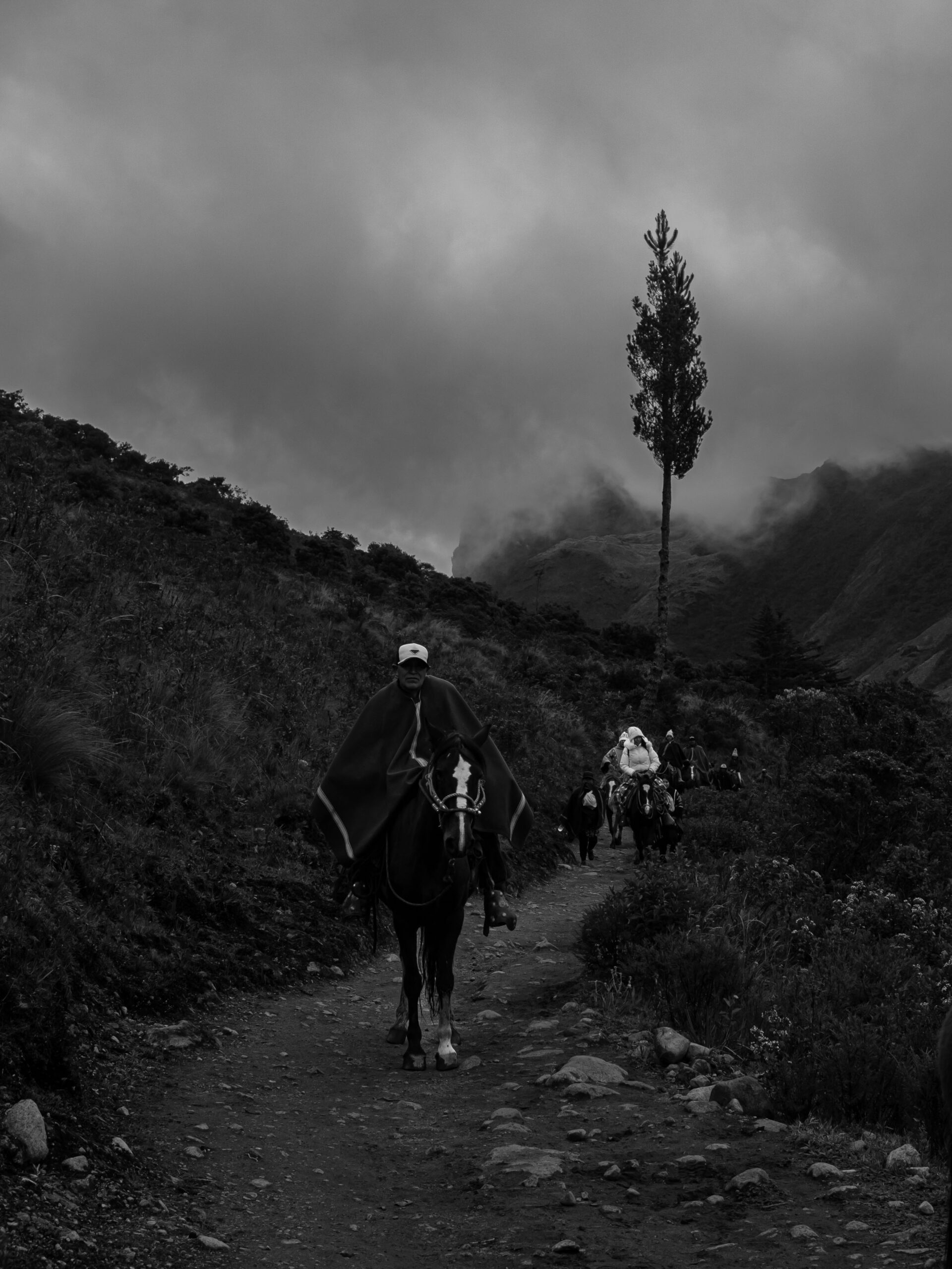 Cerca de allí un grupo de colibríes revolotean por entre unas flores amarillas. Una caravana, guiada por un curandero ataviado en su poncho rojo, nos da el alcance. Los hombres, mujeres y niños que lo siguen caminan sin fatiga, no hace mella en ellos la altura, conversan a viva voz. Saludan con respeto y ofrecen beber cañazo para atacar al frío. Tras su paso queda el rumor de la música que escuchan, es una cumbia alegre, un sanjuanito que habla de amor y cuyas estrofas encuentran eco en el silencio de las piedras. Los caminantes son de Cajamarca, Chiclayo y Lima, otros de Ecuador y Colombia. Todos van hacia las lagunas.